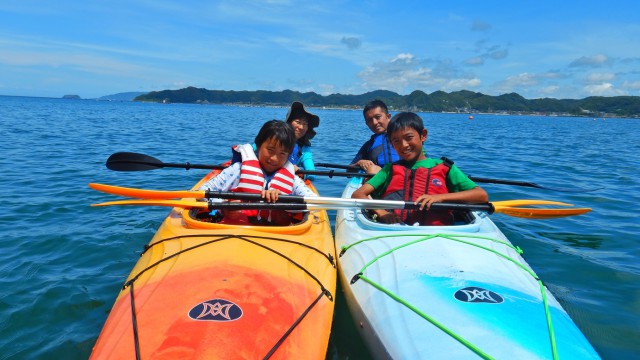 陸上と海上の両方でカヤックのレクチャーをしっかりと行いますので、初めての方やファミリーにもおすすめです。